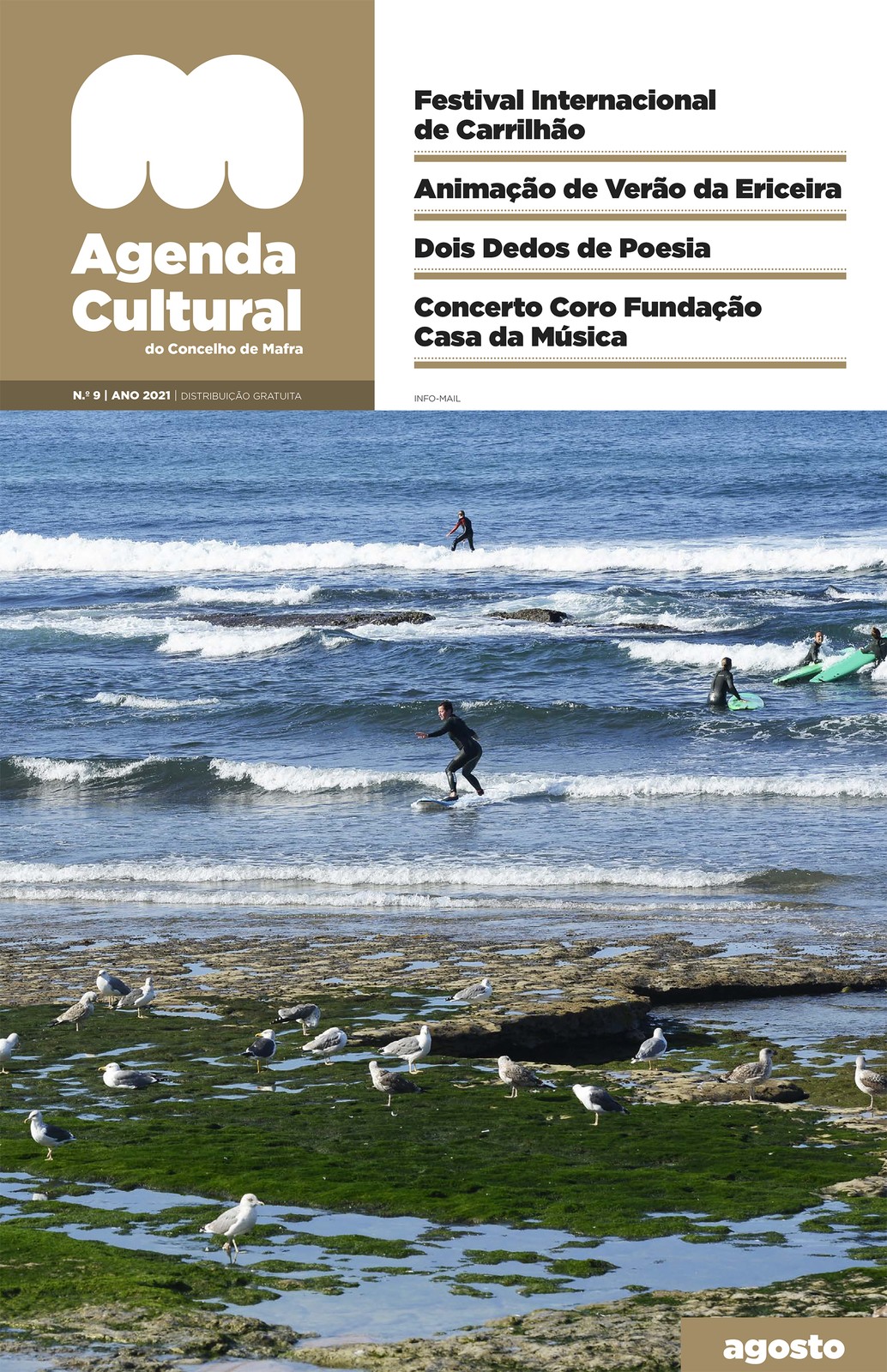 Consulte: https://www.cm-mafra.pt/cmmafra/uploads/document/file/8503/agendacultural_agosto_2021.pdf Em alternativa consulte na plataforma Issu: https://issuu.com/56500/docs/agendacultural_agosto_2021