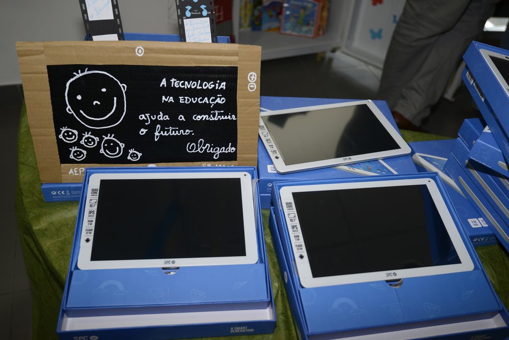 Foram adquiridos tablets, computadores portáteis e projetores de vídeo, mediante o levantamento das necessidades efetuado pelos referidos Agrupamentos de Escolas.