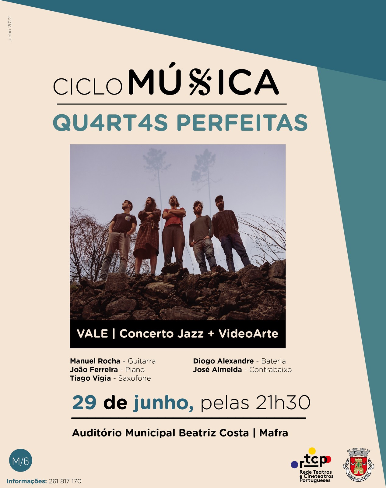 O Ciclo de Música “Quartas Perfeitas” apresenta mais um concerto, protagonizado pelo grupo Vale, agendado para o dia 29 de junho, às 21h30, no Auditório Municipal Beatriz Costa, em Mafra.