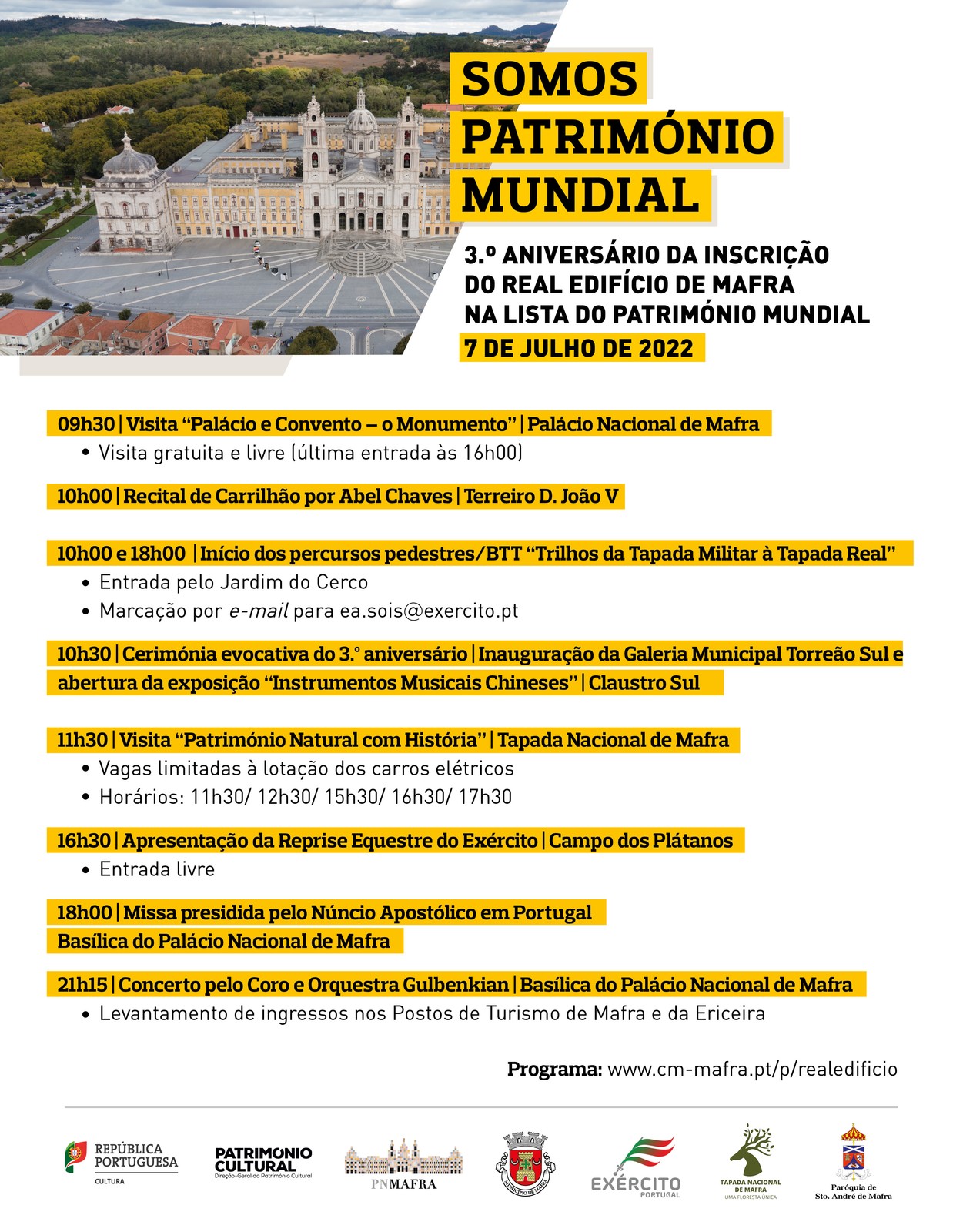 Celebramos hoje o 3.º aniversário da inscrição do Real Edifício de Mafra na lista do Património Mundial da UNESCO.