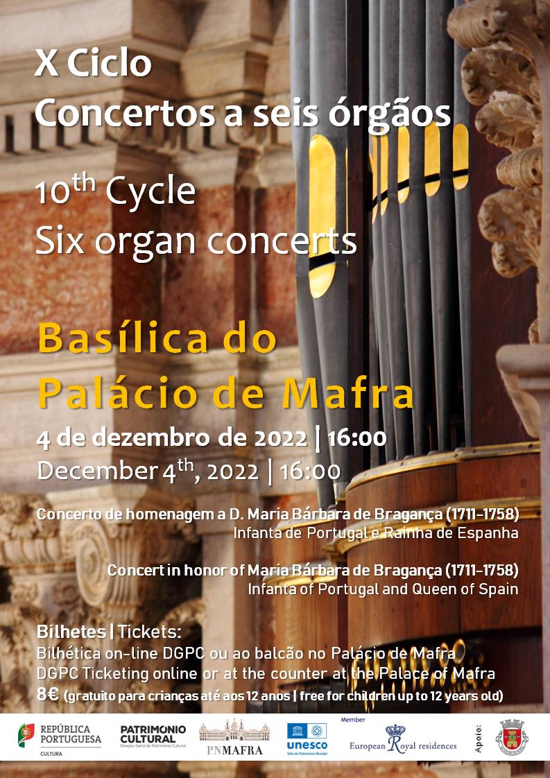 No próximo domingo, dia 4 de dezembro, pelas 16h00, realiza-se o último concerto do ano, no âmbito do Ciclo a Seis Órgãos, na Basílica do Palácio Nacional de Mafra. Este espetáculo será em homenagem a D. Maria Bárbara de Bragança (1711-1758), Infanta de Portugal e Rainha de Espanha.