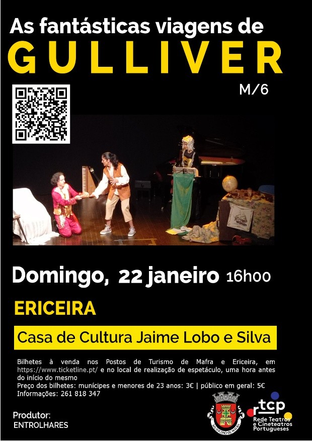 A Casa de Cultura Jaime Lobo e Silva, na Ericeira, vai acolher uma visita ao mundo do imaginário. “As fantásticas viagens de Gulliver”, um espetáculo inspirado na obra de Jonathan Swift, realiza-se no próximo dia 22 de janeiro, pelas 16h00.