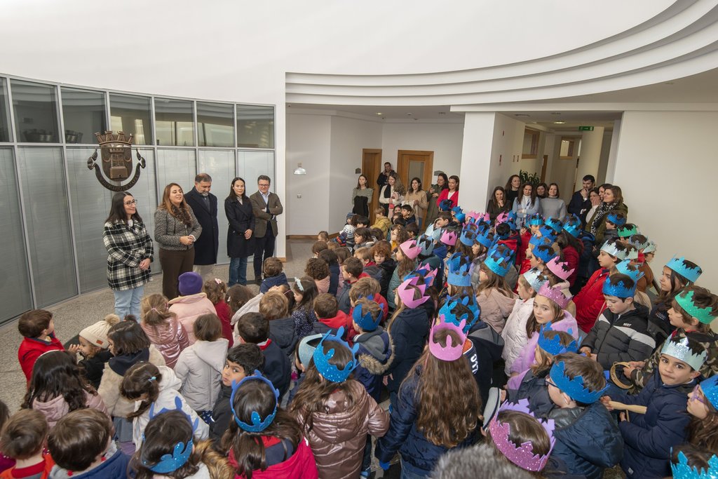 Os alunos do Colégio “Arte & Manha”, de Mafra, desejaram um feliz ano de 2023, (en)cantando com a sua música e alegria, no edifício dos Paços do Município.
