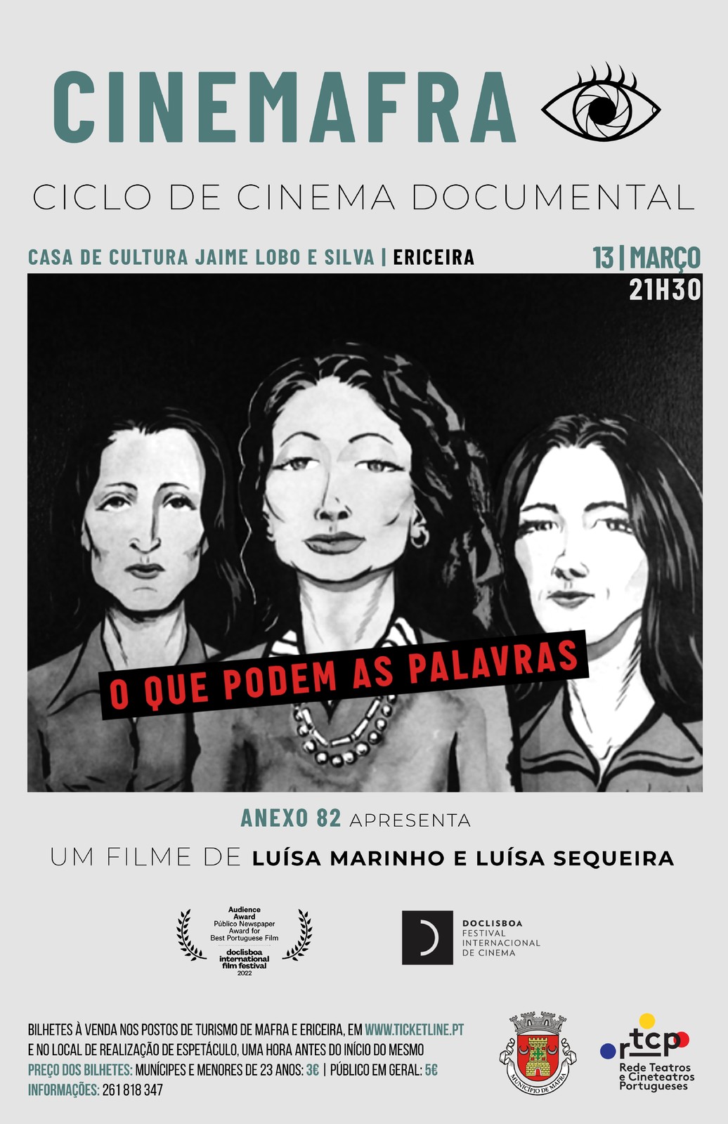 O CineMafra – Ciclo de Cinema Documental continua. “O que podem as palavras” é o título do filme que será exibido nesta mostra cinematográfica, na próxima segunda-feira, dia 13 de março, às 21h30, na Casa de Cultura Jaime Lobo e Silva, na Ericeira.