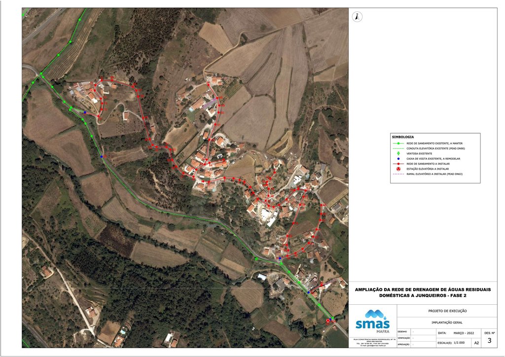 Os Serviços Municipalizados de Água e Saneamento do Município de Mafra (SMAS de Mafra) informam que, no âmbito da ampliação da rede de drenagem de águas residuais domésticas, está a decorrer uma obra na Estrada Principal e na Estrada das Várzeas, na freguesia de Santo Isidoro, que atravessa a povoação de Junqueiros, contemplando a execução dos troços de coletor e a conduta elevatória nos referidos arruamentos. Face aos incómodos causados, os SMAS apelam à melhor compreensão dos munícipes.