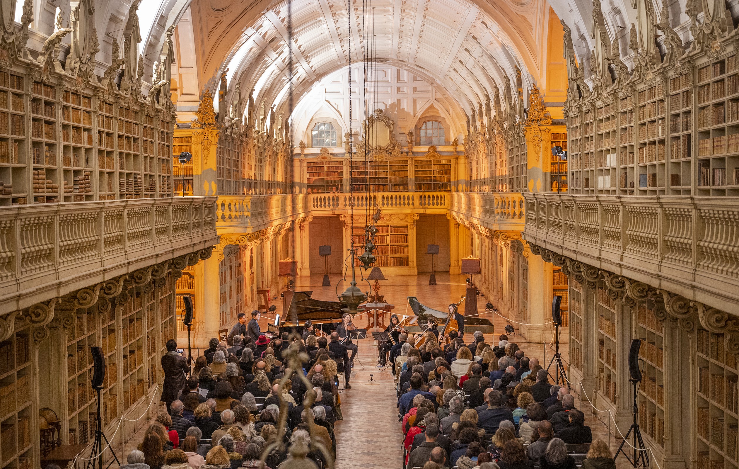 O magnífico cenário da Biblioteca do Palácio Nacional de Mafra acolheu, no âmbito do Dia Internacional da Mulher, o concerto de tributo a Dona Maria Bárbara de Bragança, figura ímpar da Música, da Arte e da Cultura portuguesa, num elogio alargado a todo o público feminino. Do repertório fez parte a estreia mundial da peça “Concertino para Mafra”, do compositor brasileiro João Guilherme Ripper, criada especialmente para a ocasião, em homenagem a Dona Maria Bárbara e dedicada ao pianista Adriano Jordão.