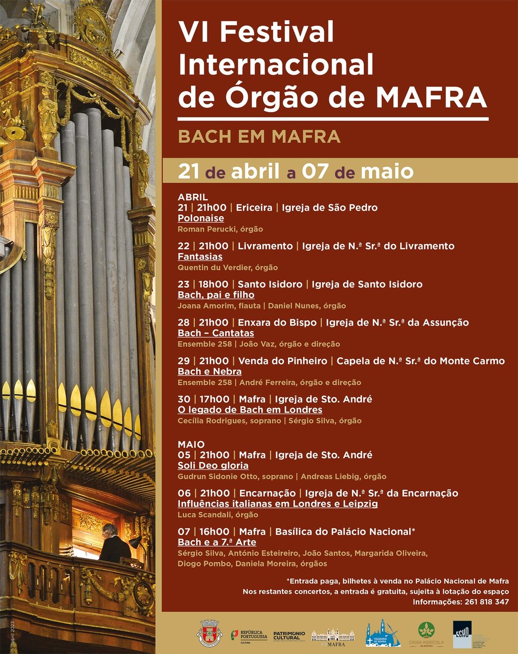 A música de órgão vai começar a tocar no Concelho de Mafra! O Festival Internacional de Órgão de Mafra tem início já no próximo fim de semana, com concertos marcados na Ericeira, no Livramento e em Santo Isidoro. Nesta sexta edição, é efetuada uma homenagem sentida ao compositor Johann S. Bach, integrando obras da sua autoria no repertório dos concertos.