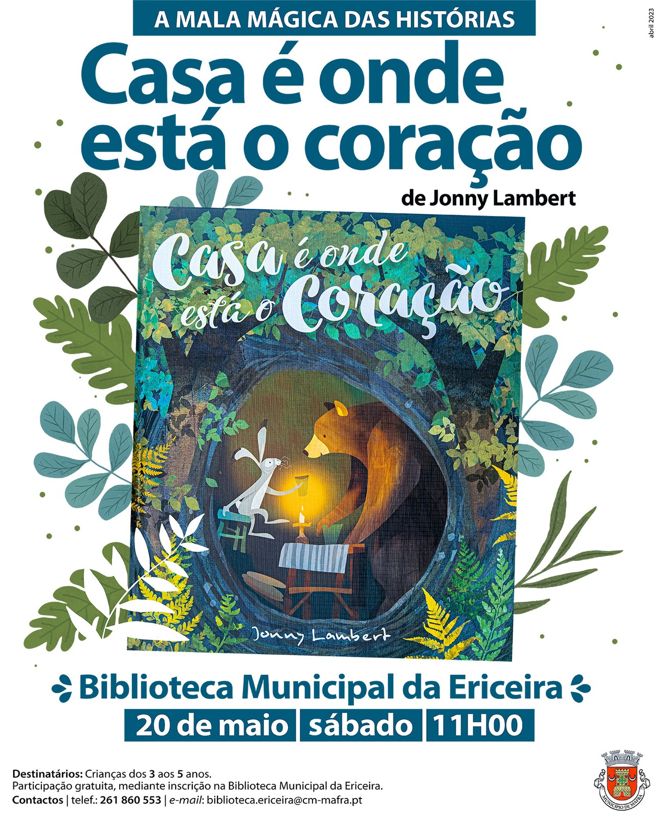 “Casa é onde está o coração”, de Jonny Lambert, é a história sobre amizade e entreajuda que as crianças dos 3 aos 5 anos poderão escutar na próxima atividade da Hora do Conto, no dia 20 de maio, às 11h00, na Biblioteca Municipal da Ericeira.