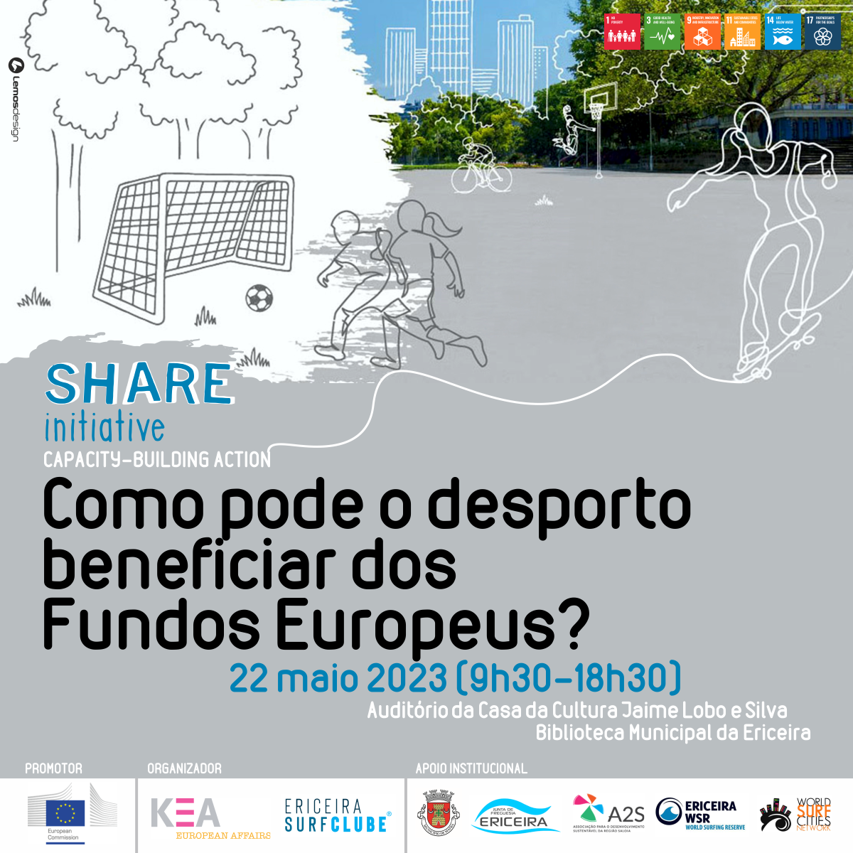 O Ericeira Surf Clube, em parceria com a Comissão Europeia e a KEA European Affairs, promove uma ação de formação e capacitação para agentes desportivos e demais entidades públicas e privadas, sobre financiamento europeu no setor do desporto. Sob o tema “Como pode o desporto beneficiar dos fundos europeus?”, a sessão decorre no dia 22 de maio, das 09h30 às 18h30, na Casa de Cultura Jaime Lobo e Silva, na Ericeira.