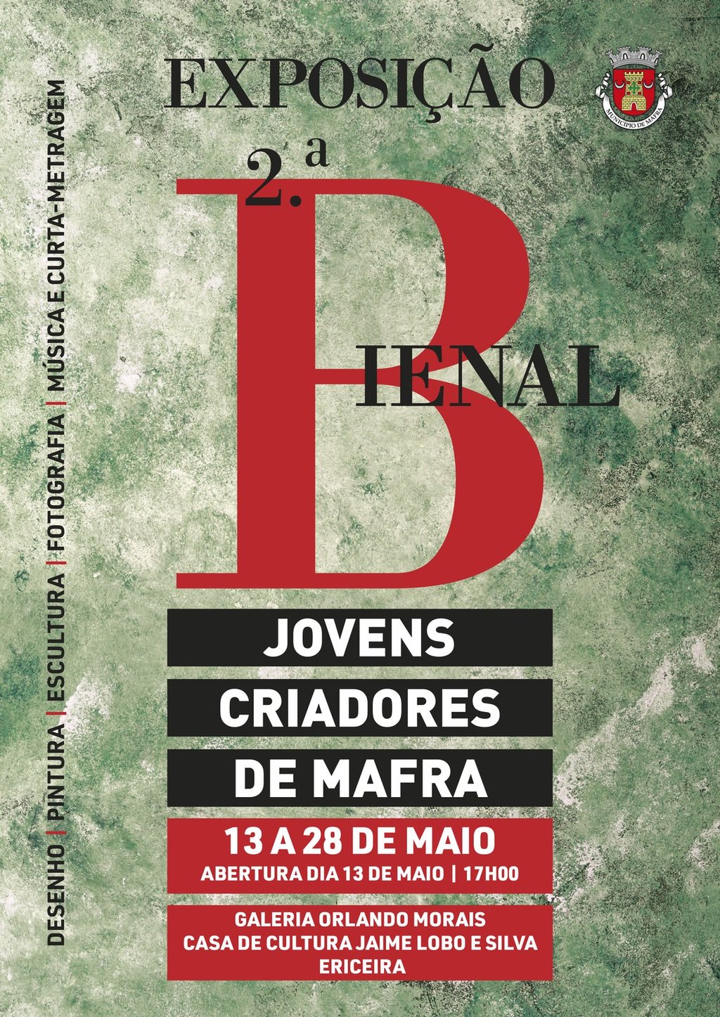 No âmbito da 2.ª Bienal de Jovens Criadores de Mafra, que integra trabalhos nas categorias de Expressão Plástica (Desenho, Pintura e Escultura) e de Multimédia (Fotografia, Música e Curta-metragem), no dia 13 de maio, pelas 17h00, realiza-se a abertura da exposição final das obras a concurso e anúncio dos vencedores desta edição. A mostra decorre até 28 de maio, na Galeria Municipal Orlando Morais, na Casa de Cultura Jaime Lobo e Silva, Ericeira.