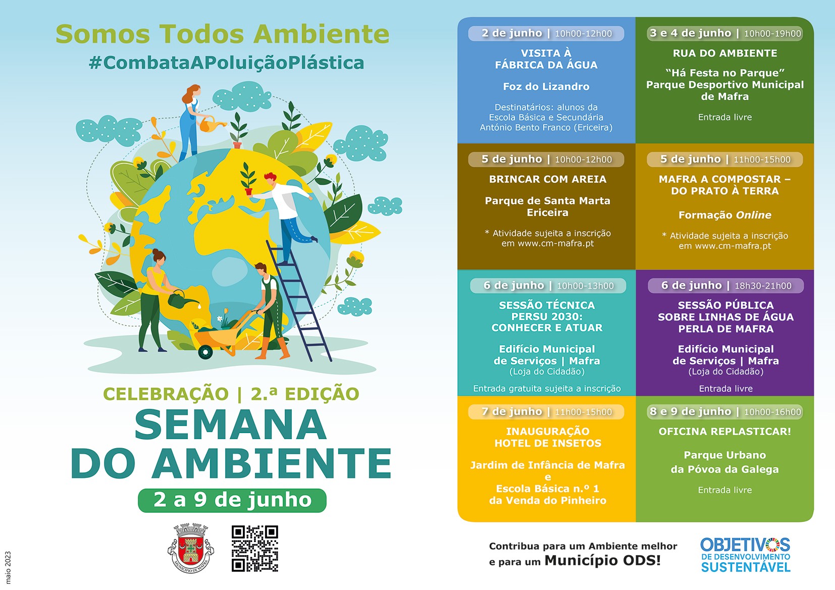 Neste Dia Mundial do Ambiente, fique a conhecer as atividades pedagógicas e de sensibilização que temos preparadas para si. Sob o mote “Somos todos Ambiente #CombataAPoluiçãoPlástica”, a 2.ª edição da Semana do Ambiente integra workshops temáticos, sessões de esclarecimento e oficinas didáticas para os mais novos. As atividades decorrem até ao dia 9 de junho, em vários locais do Concelho de Mafra. A participação é gratuita.