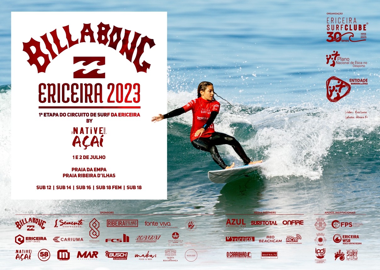 O BILLABONG ERICEIRA 2023, by NATIVE AÇAÍ, regressa, nos dias 1 e 2 de julho, nas categorias juniores, estando prevista a sua realização nas praias de Ribeira d’Ilhas ou da Empa.