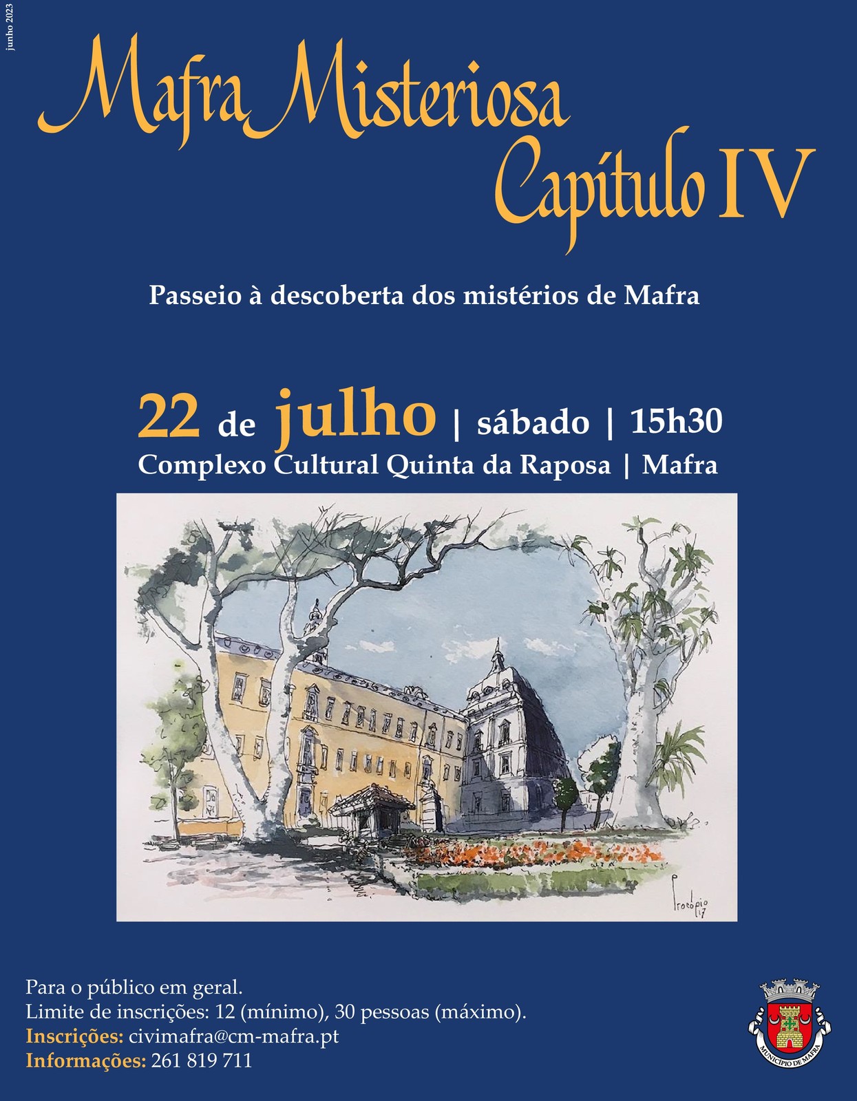 Sabia que a vila de Mafra guarda mistérios e lendas? Participe no passeio pedestre pelos caminhos da vila e descubra todas as histórias, visíveis e invisíveis, na próxima atividade “Mafra Misteriosa”. O passeio realiza-se no dia 22 de julho, às 15h30, com início no Complexo Cultural Quinta da Raposa, em Mafra.