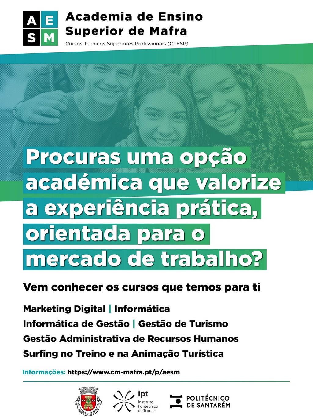 Estão a decorrer as candidaturas para os Cursos Técnicos Superiores Profissionais (CTESP) ministrados, no ano letivo 2023/2024, na Academia de Ensino Superior de Mafra (AESM).