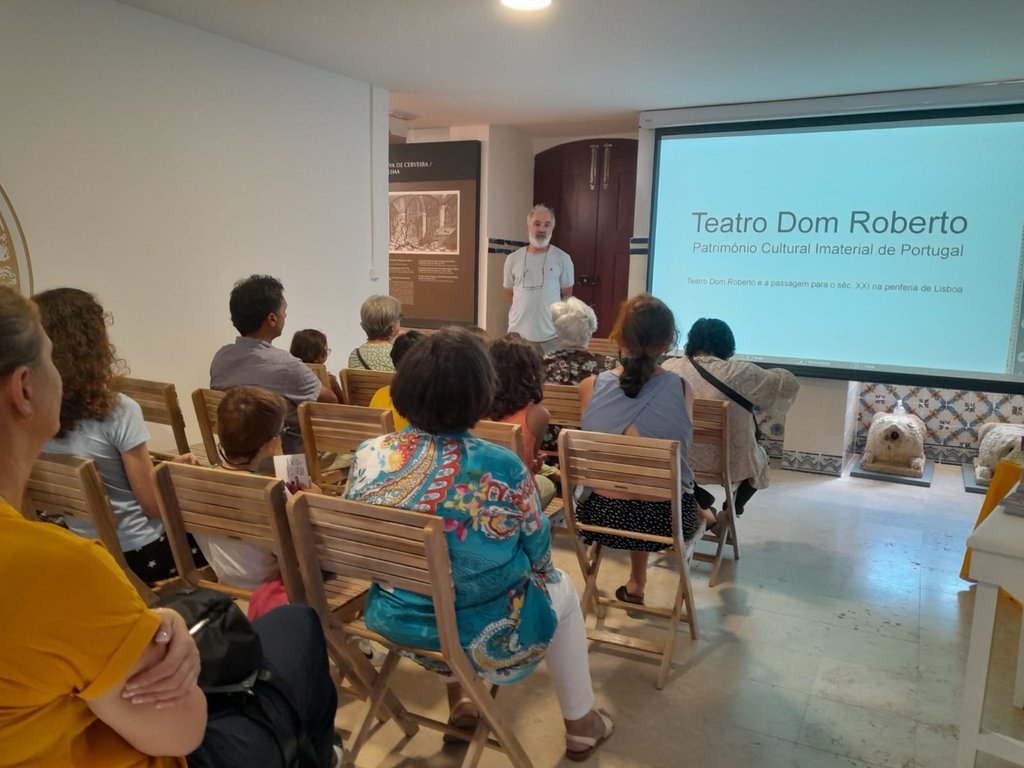 A sessão deu a conhecer o tradicional “Teatro de Dom Roberto”, uma arte cénica popular, presente nas mais diversas feiras, mercados, praias e praças, animando o público com os seus fantoches.