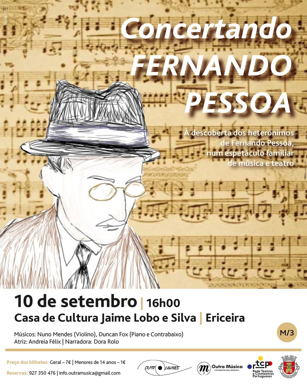 A peça “Concertando Fernando Pessoa” vai a cena na Casa de Cultura Jaime Lobo e Silva, na Ericeira, no próximo dia 10 de setembro, às 16h00.