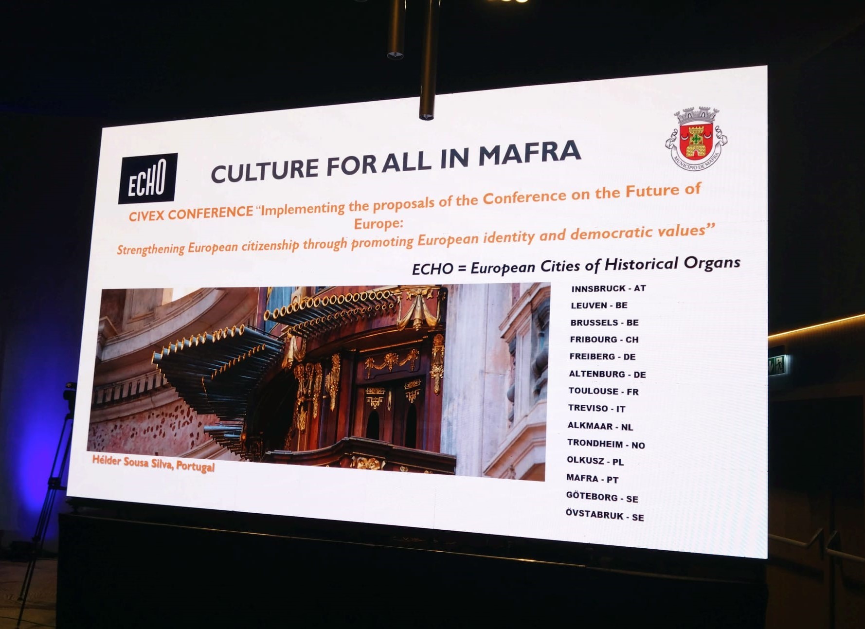 Intervindo no painel “Apresentação das melhores práticas do projeto-piloto do CoR sobre Promover os valores da UE através da educação e da cultura”, o autarca partilhou a experiência do Município de Mafra, mais concretamente o projeto “Cultura para todos”, no âmbito do qual têm vindo a ser desenvolvidas várias ações de valorização do património organístico do Concelho.