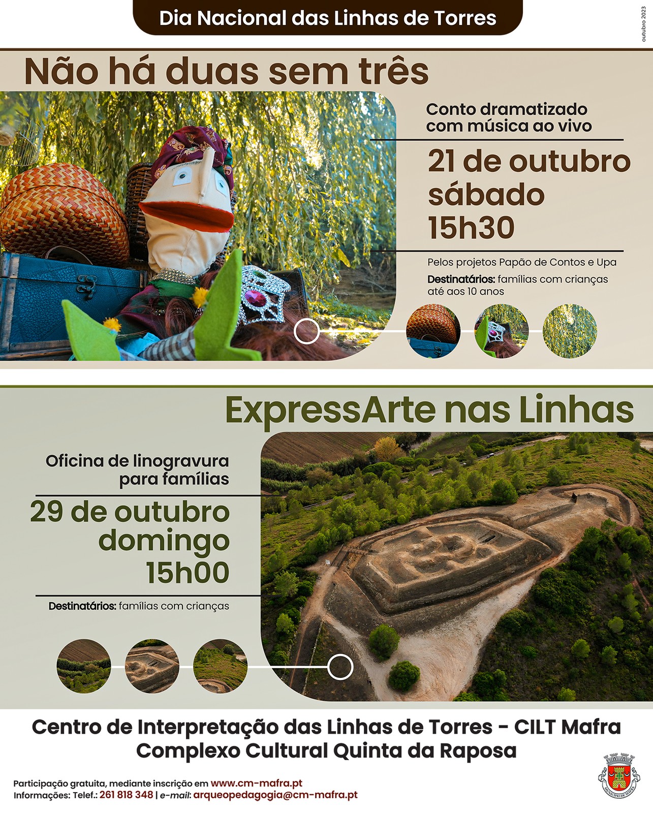 Venha comemorar o Dia Nacional das Linhas de Torres! Não perca as atividades que temos preparadas para si, nos dias 21 e 29 de outubro, no Centro de Interpretação das Linhas de Torres – CILT Mafra, sito no Complexo Cultural Quinta da Raposa (Mafra).