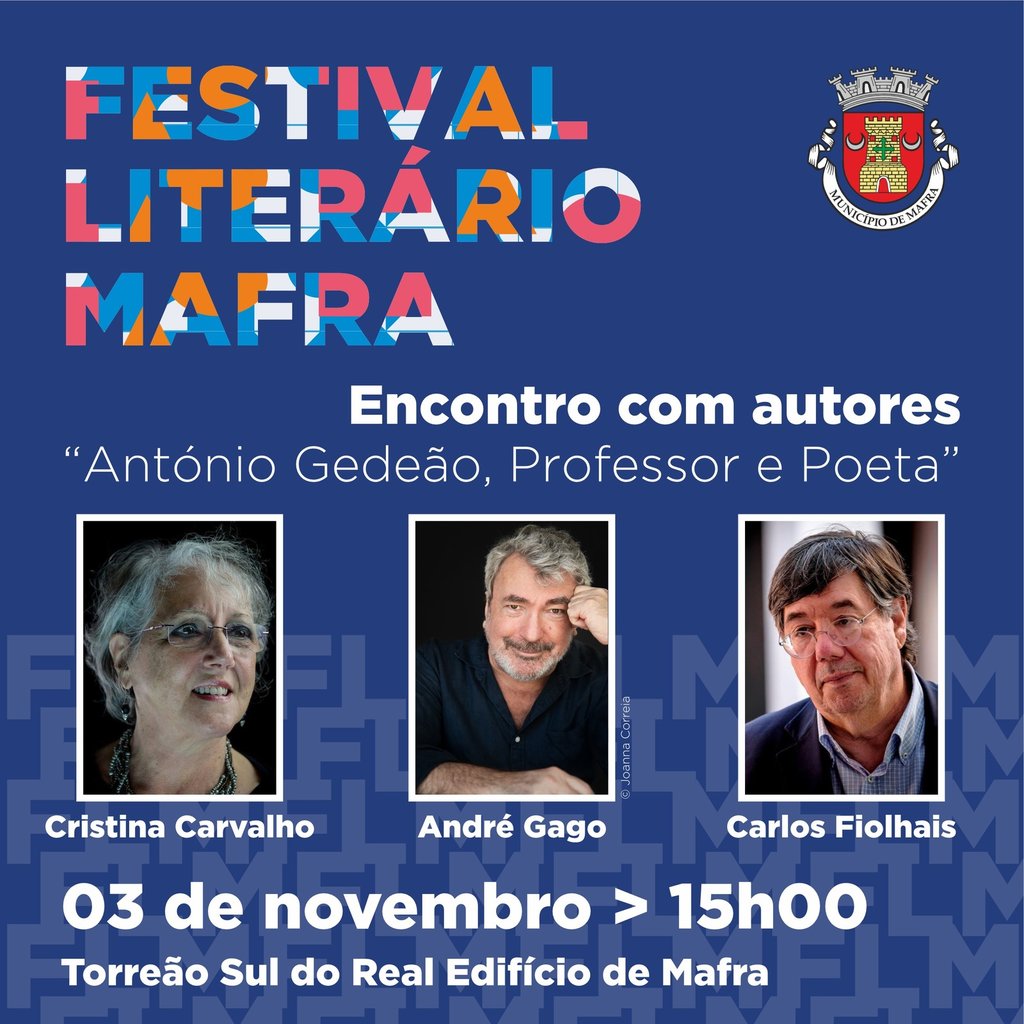A vida e obra do poeta António Gedeão, pseudónimo de Rómulo de Carvalho, será o mote para o terceiro encontro com autores do Festival Literário de Mafra, na qual estarão presentes Cristina Carvalho, André Gago e Carlos Fiolhais. A sessão “António Gedeão, Professor e Poeta” decorre no dia 3 de novembro, às 15h00, no Torreão Sul do Real Edifício de Mafra.