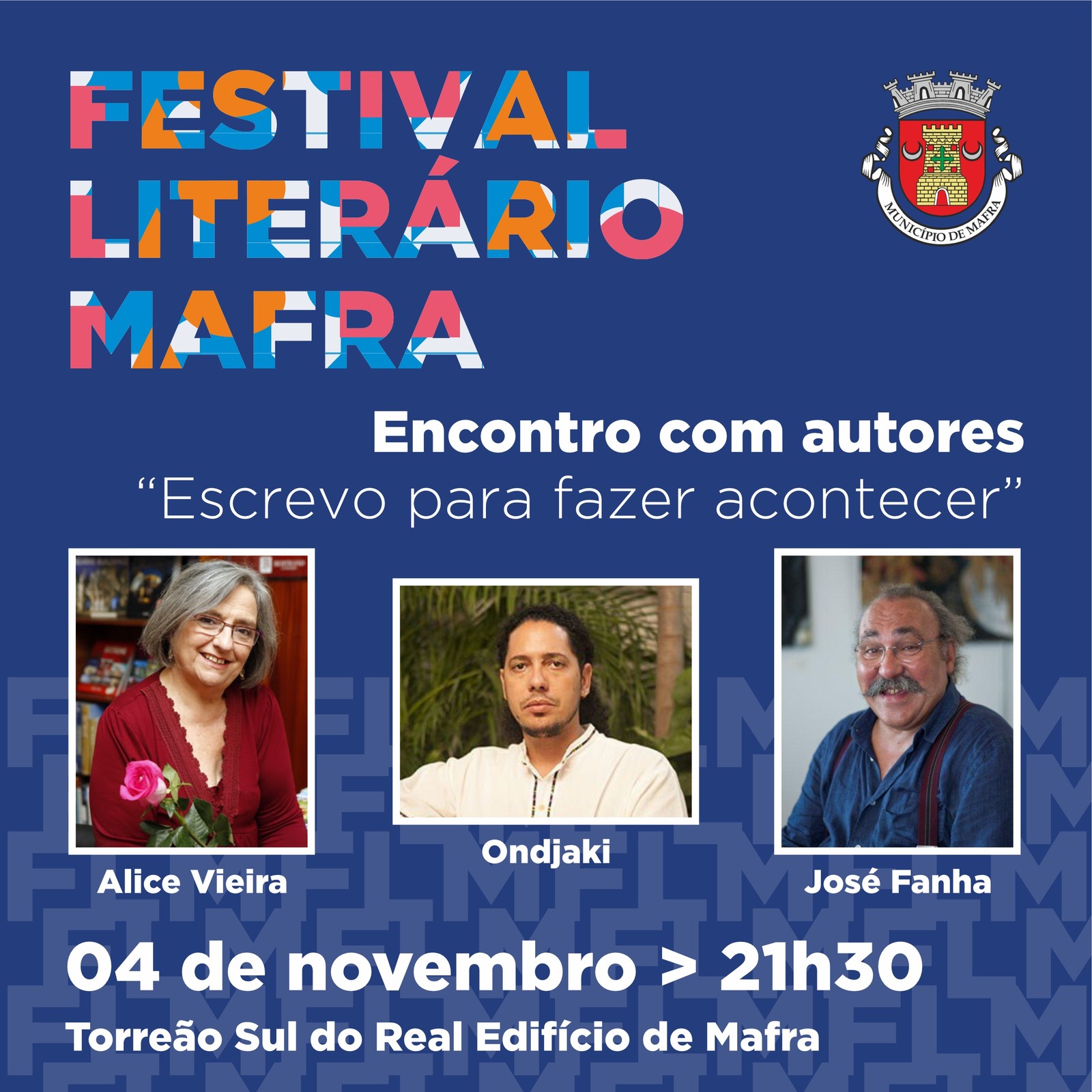 Alice Vieira, Ondjaki e José Fanha são os convidados do encontro “Escrevo para fazer acontecer”, no Festival Literário de Mafra. O sétimo encontro com autores realiza-se no dia 4 de novembro, às 21h30, no Torreão Sul do Real Edifício de Mafra.