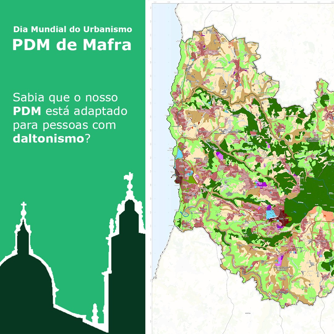 Sabia que o Plano Diretor Municipal de Mafra (PDM) e demais elementos cartográficos (plantas de ordenamento e condicionantes) já incluem a aplicação gráfica do Alfabeto das Cores – o ColorADD®, facilitando a sua interpretação por cidadãos com daltonismo? Neste Dia Mundial do Urbanismo, a Câmara Municipal divulga esta nova forma de comunicação e divulgação do PDM, mais inclusiva e universal.