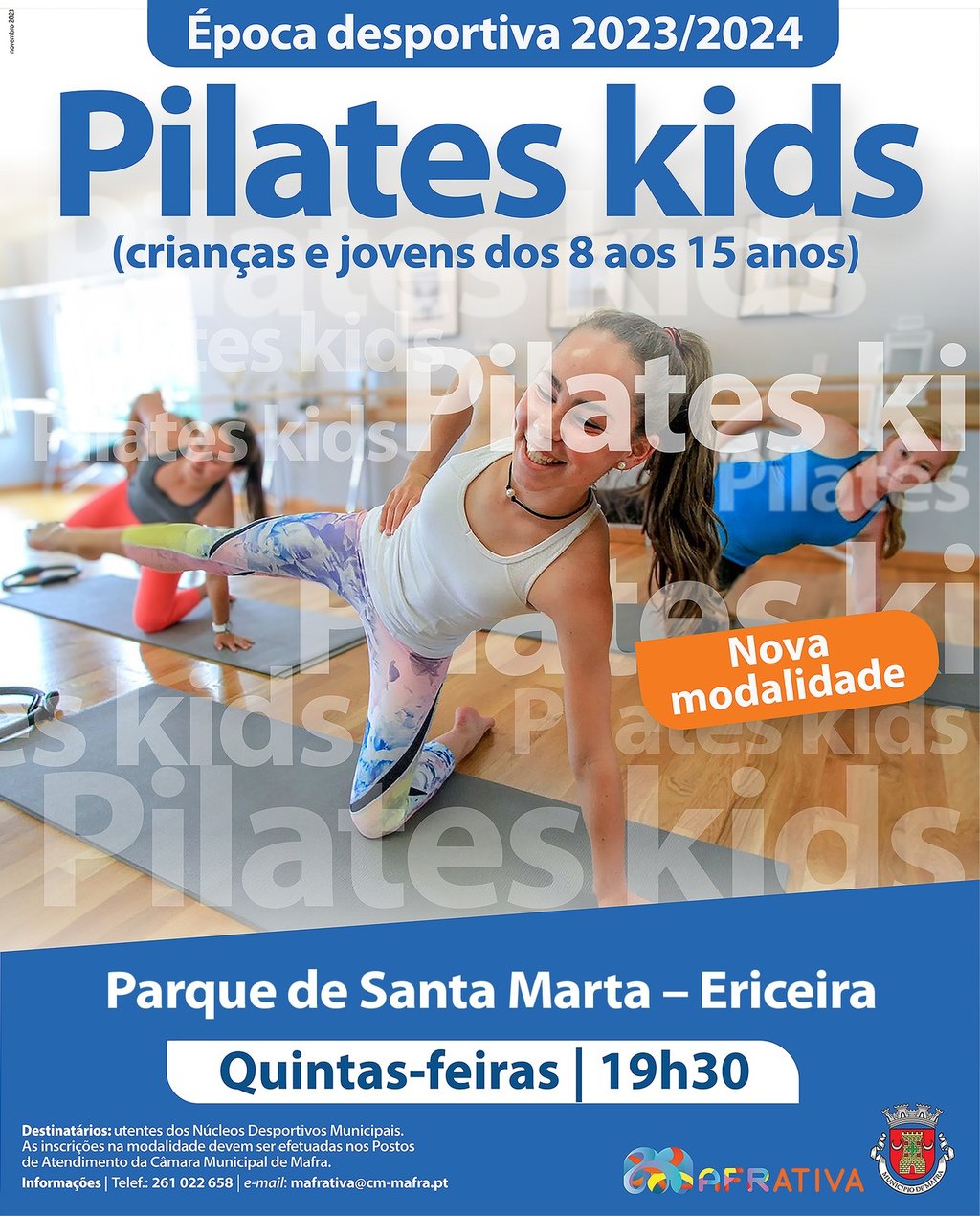 A Câmara Municipal de Mafra apresenta uma nova modalidade desportiva. A partir do dia 7 de dezembro, são disponibilizadas aulas de pilates para crianças e jovens dos 8 aos 15 anos, no âmbito do programa Mafrativa. As aulas realizam-se sempre às quintas-feiras, às 19h30, no Parque de Santa Marta – Ericeira.