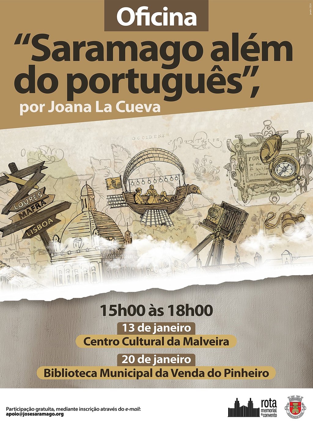O programa da Rota do Memorial do Convento, rota literária que percorre os principais locais da obra de José Saramago, está de regresso com novas atividades. Nos dias 13 e 20 de janeiro, participe na oficina “Saramago Além do Português” e venha explorar os grandes temas abordados pelo autor, na obra “Memorial do Convento”.