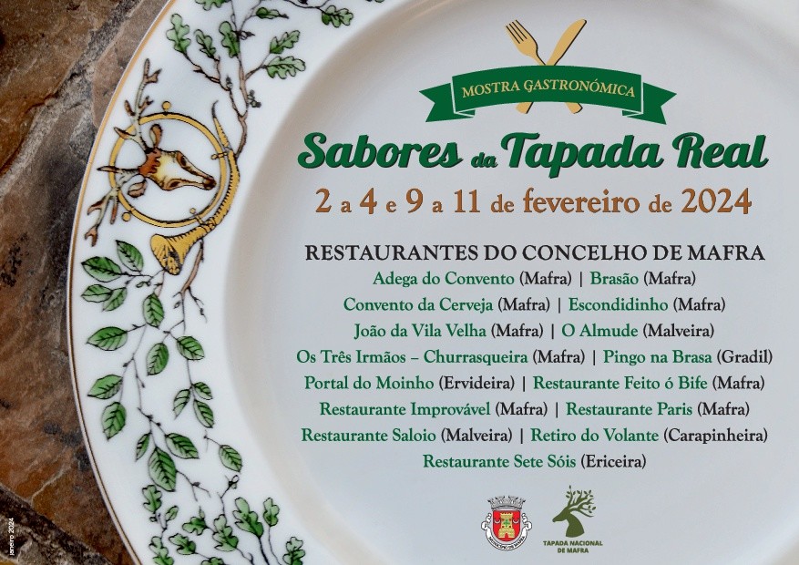 Marque na sua agenda! De 2 a 4 e de 9 a 11 de fevereiro, está de regresso a Mostra Gastronómica “Sabores da Tapada Real”, organizada pela Câmara Municipal e a Tapada Nacional de Mafra.