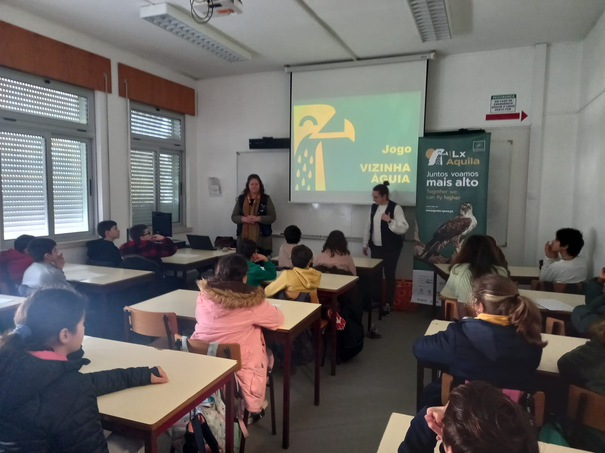 Através de diversas dinâmicas de recreio e sala de aula, os alunos exploraram o dia a dia de uma ave de rapina, em especial a águia-de-Bonelli, e alguns dos desafios que podem comprometer a sua conservação, como a escassez de alimento e habitat, poluição, presença humana no seu território ou embates com linhas elétricas.