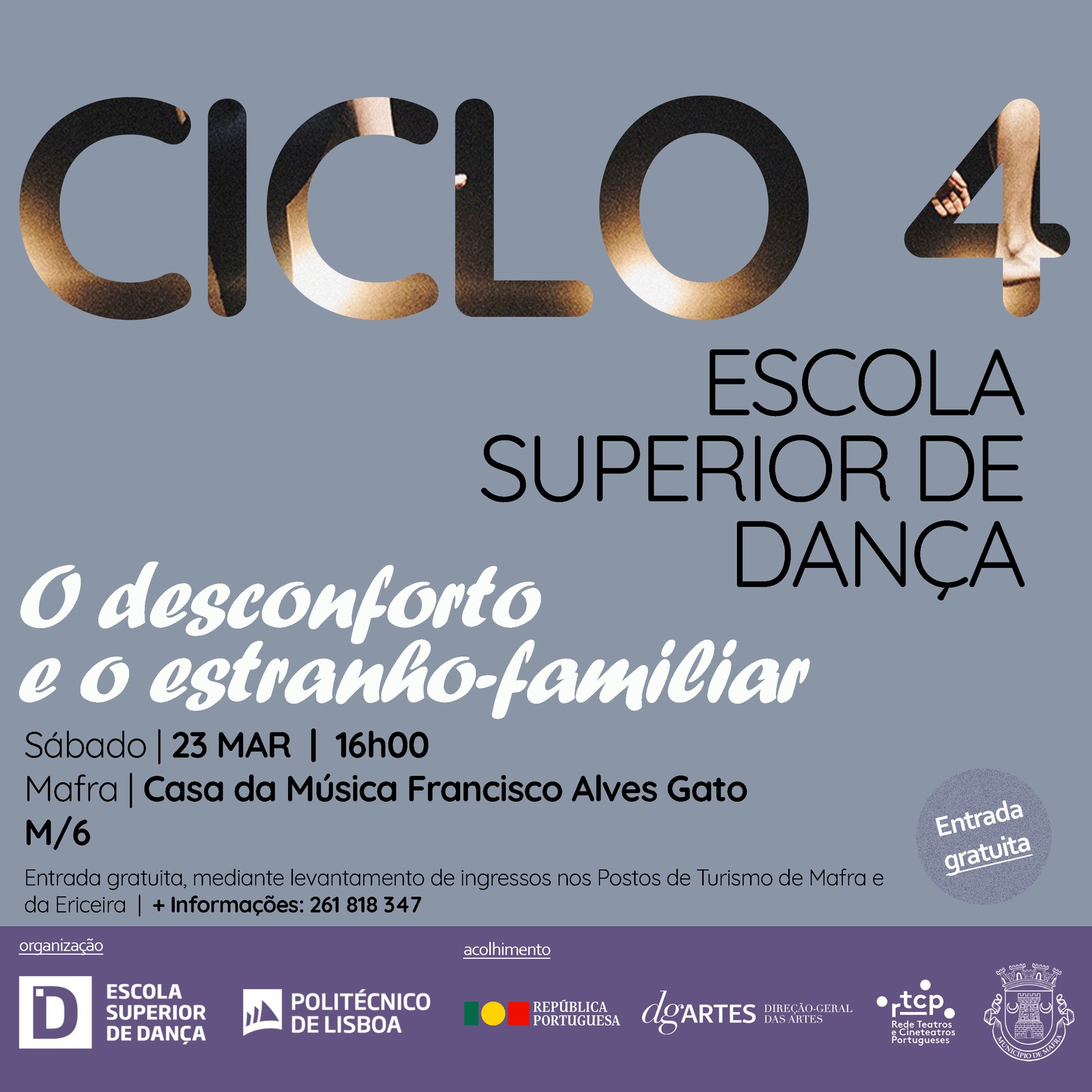 A estranheza surge de uma proximidade oculta com o familiar. Este é o pensamento de Sigmund Freud que dá o mote para o espetáculo de dança “O desconforto e o estranho-familiar”, pelos alunos da Escola Superior de Dança, que sobe ao palco da Casa da Música Francisco Alves Gato, em Mafra, no dia 23 de março, às 16h00. Entrada gratuita, mediante levantamento de ingressos nos Postos de Turismo de Mafra e Ericeira.