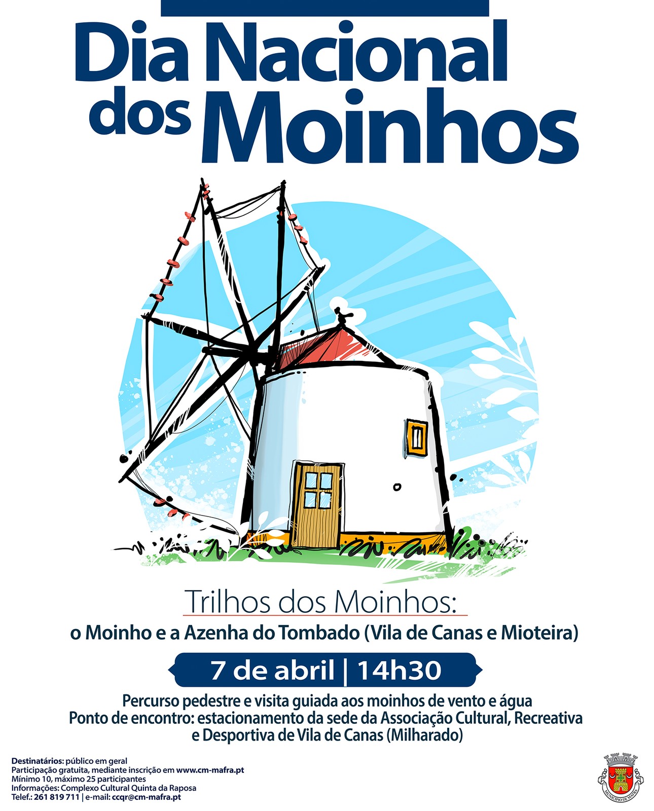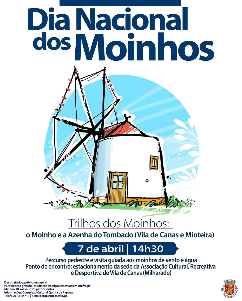 Venha celebrar o Dia Nacional dos Moinhos connosco! No dia 7 de abril, pelas 14h30, participe no percurso pedestre e na visita guiada aos moinhos de vento e água, em Vila de Canas e na Mioteira, respetivamente. Esta atividade integra, também, um momento de convívio com lanche, em colaboração com a comunidade local.