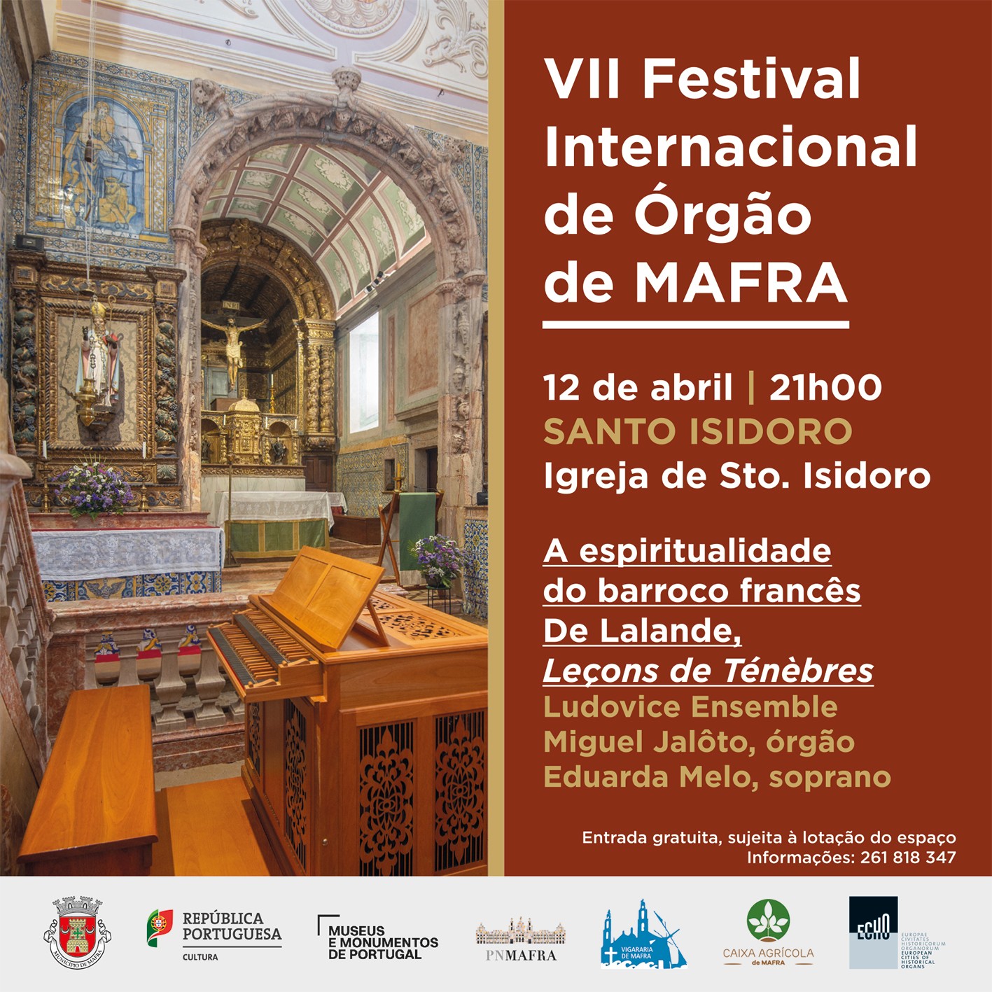 A Igreja de Santo Isidoro acolhe o próximo concerto do Festival Internacional de Órgão de Mafra. Não perca, hoje, às 21h00, o concerto “A espiritualidade do barroco francês: De Lalande, Leçons de Ténèbres”, pelo Ludovice Ensemble, acompanhado do organista Miguel Jalôto e da soprano Eduarda Melo.