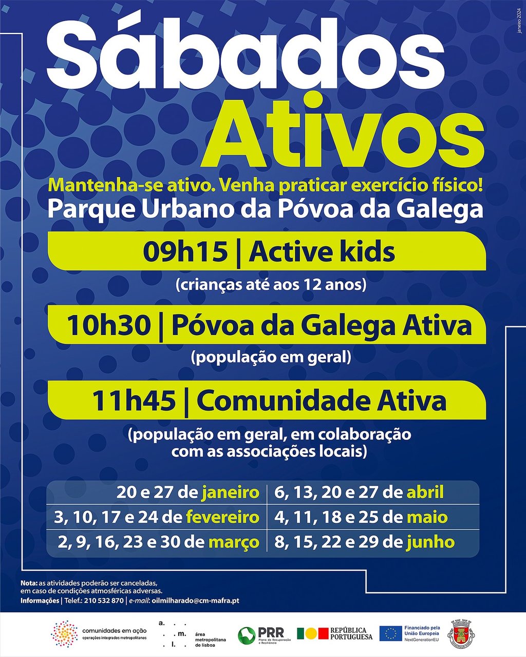 Junte-se a nós no próximo “Sábado Ativo” e venha praticar exercício físico ao ar livre. Participe nas atividades, abertas a todas as faixas etárias, no dia 18 de maio, a partir das 09h15, no Parque Urbano da Póvoa da Galega!