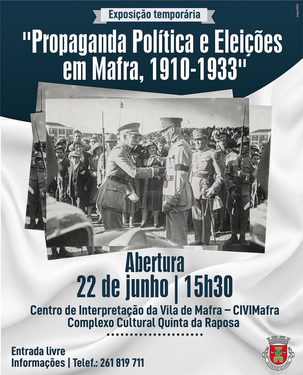 O Centro de Interpretação da Vila de Mafra (CIVIMafra), sito no Complexo Cultural Quinta da Raposa, acolhe uma nova exposição temporária, subordinada ao tema "Propaganda Política e Eleições em Mafra, 1910-1933”. A abertura está marcada para o dia 22 de junho, às 15h30.