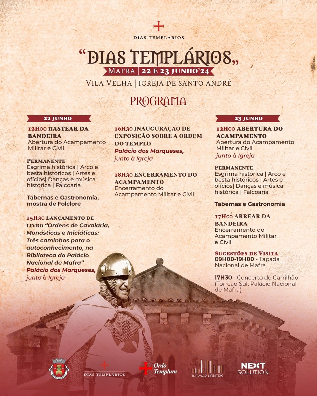 Nos dias 22 e 23 de junho, não perca o programa de atividades que evoca as tradições dos “Dias Templários”, que se realiza junto à Igreja de Santo André, em Mafra.