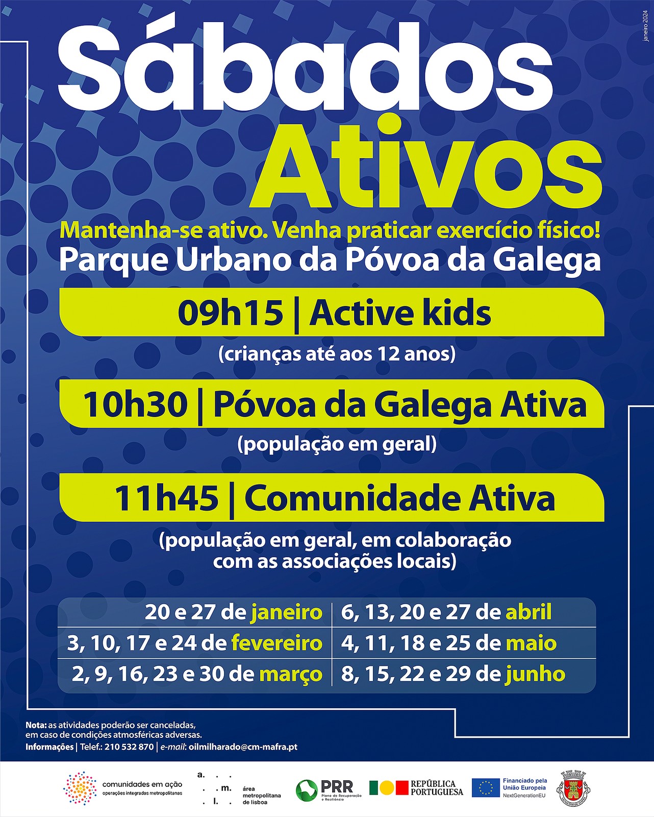 Gosta de praticar exercício ao ar livre? Junte-se a nós, no próximo “Sábado Ativo”, no dia 29 de junho, a partir das 09h15, no Parque Urbano da Póvoa da Galega! As atividades são abertas a todas as faixas etárias.