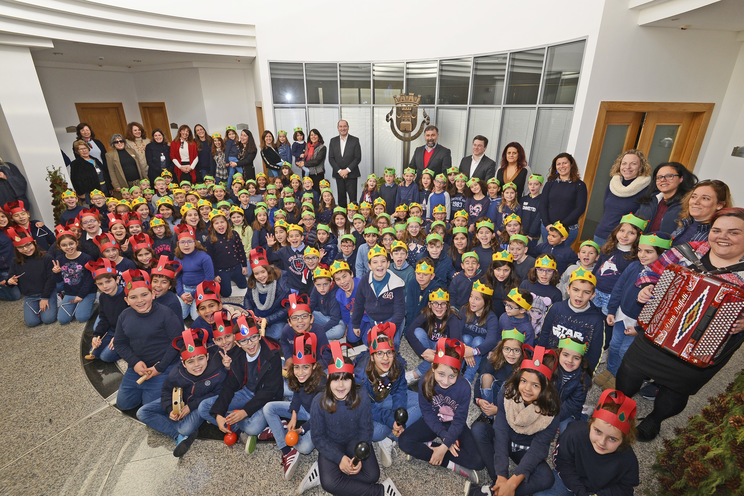 Nos Paços do Concelho, os alunos da Escola Básica n.º 1 da Venda do Pinheiro desejaram um feliz ano de 2020, (en)cantando com a sua música.