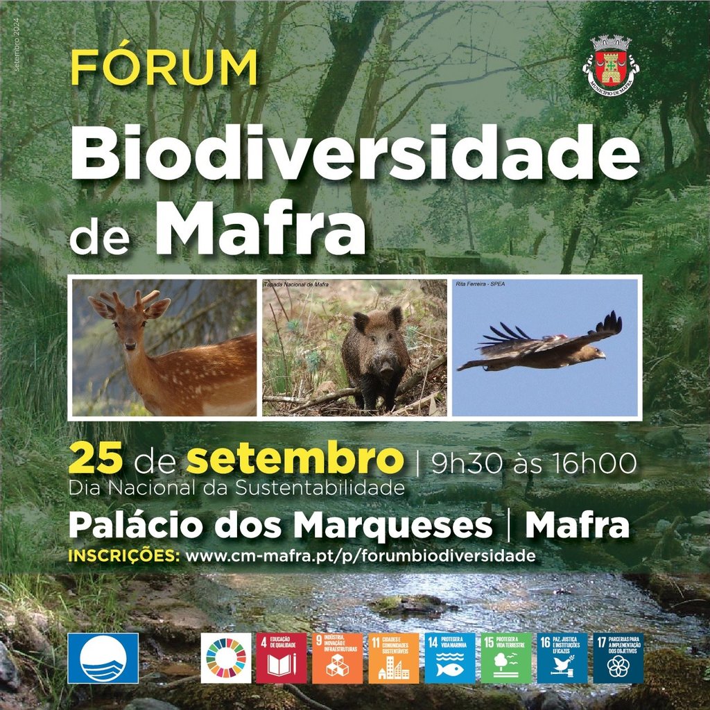 No dia 25 de setembro de 2024, Dia Nacional da Sustentabilidade, o Município de Mafra organiza o Fórum da Biodiversidade de Mafra, entre as 9h30 e as 16h00, no Palácio dos Marqueses (em frente à Igreja de Santo André), em Mafra, enquadrado no tema de 2024 da Bandeira Azul, O Mar Precisa de Líderes.