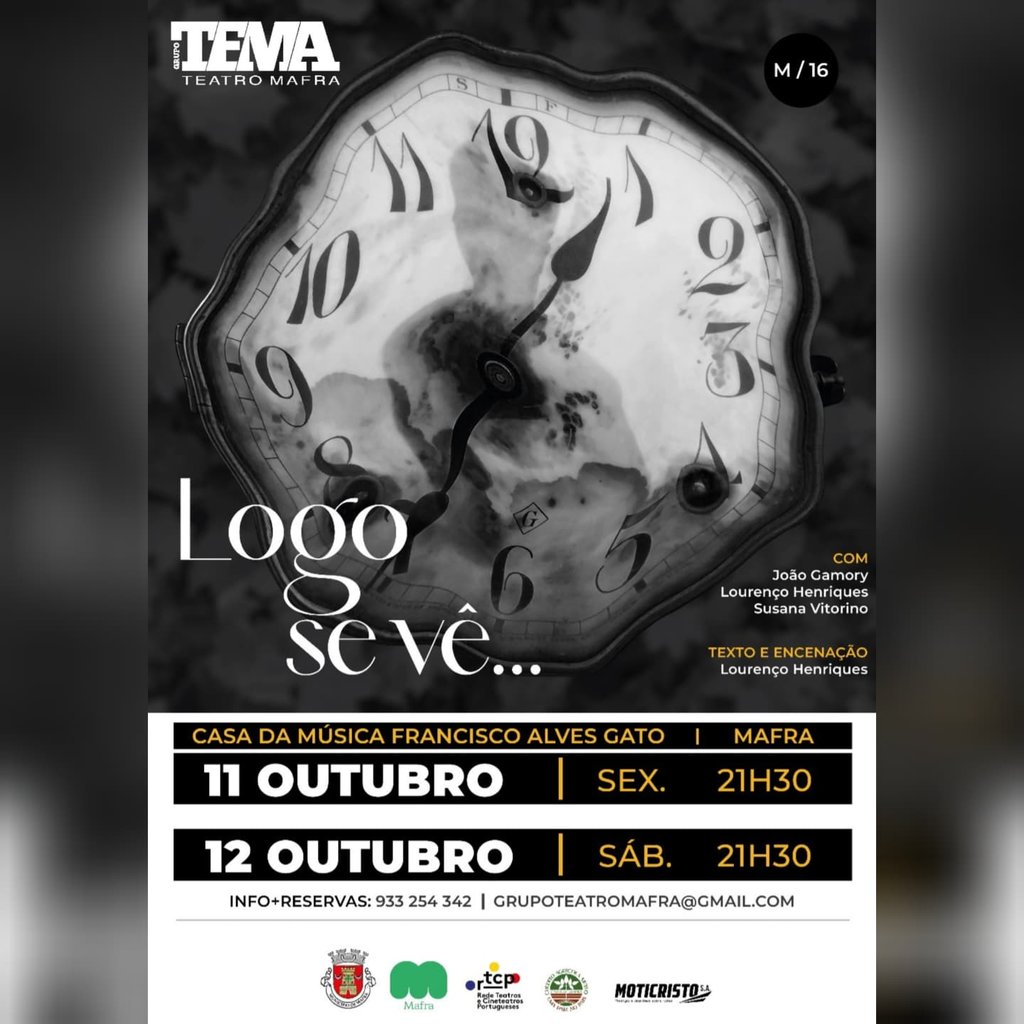 “Logo se vê”, a nova produção do Grupo TEMA – Teatro Mafra, sobe ao palco da Casa da Música Francisco Alves Gato, em Mafra, nos dias 11 e 12 de outubro, às 21h30.