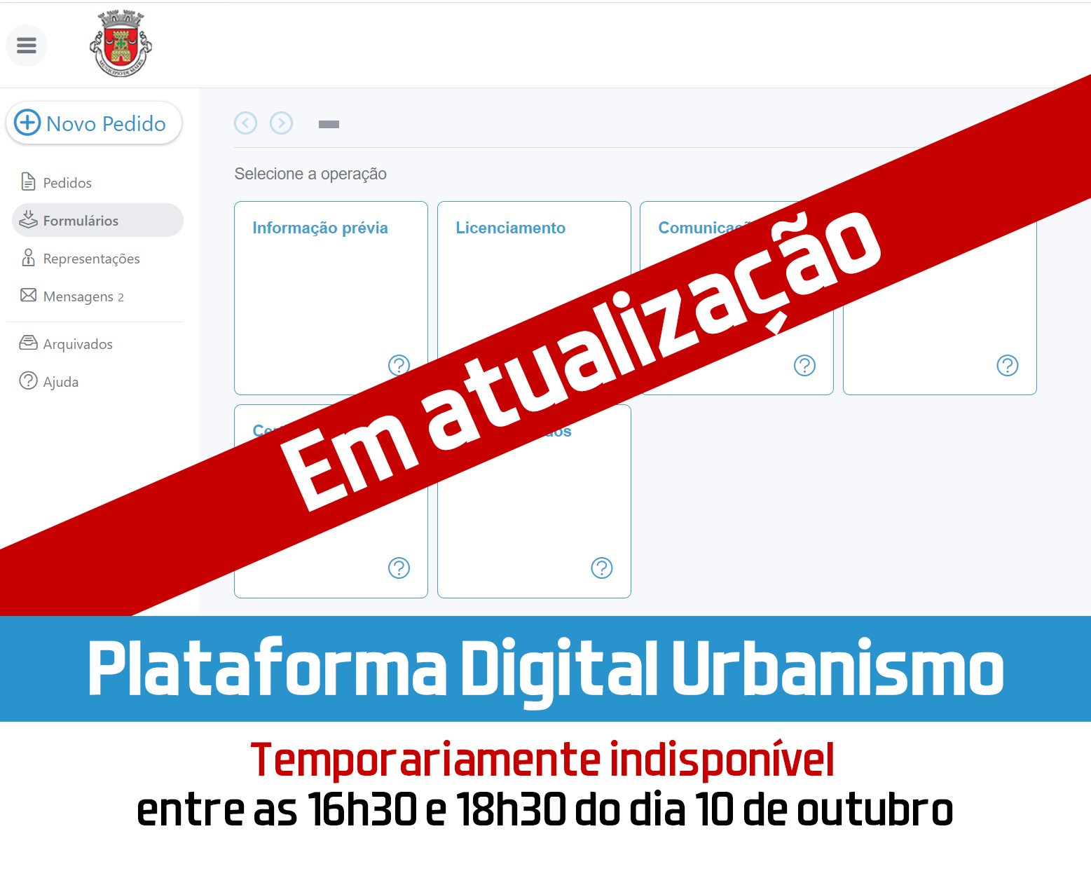 Adequando a plataforma “Urbanismo – Atendimento Online” aos procedimentos implementados pelo Simplex Urbanístico, a Câmara Municipal de Mafra irá proceder a uma atualização desta ferramenta informática, cujo serviço será interrompido, no dia 10 de outubro, entre as 16h30 e as 18h30.