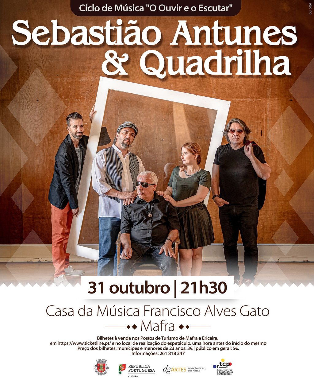 O próximo concerto do Ciclo de Música “O Ouvir e o Escutar” junta os ritmos do folk à música tradicional portuguesa, passando pela pop e pela dance music. Sebastião Antunes & Quadrilha apresentam-se em concerto, às 21h30 do próximo dia 31 de outubro, na Casa da Música Francisco Alves Gato, em Mafra.