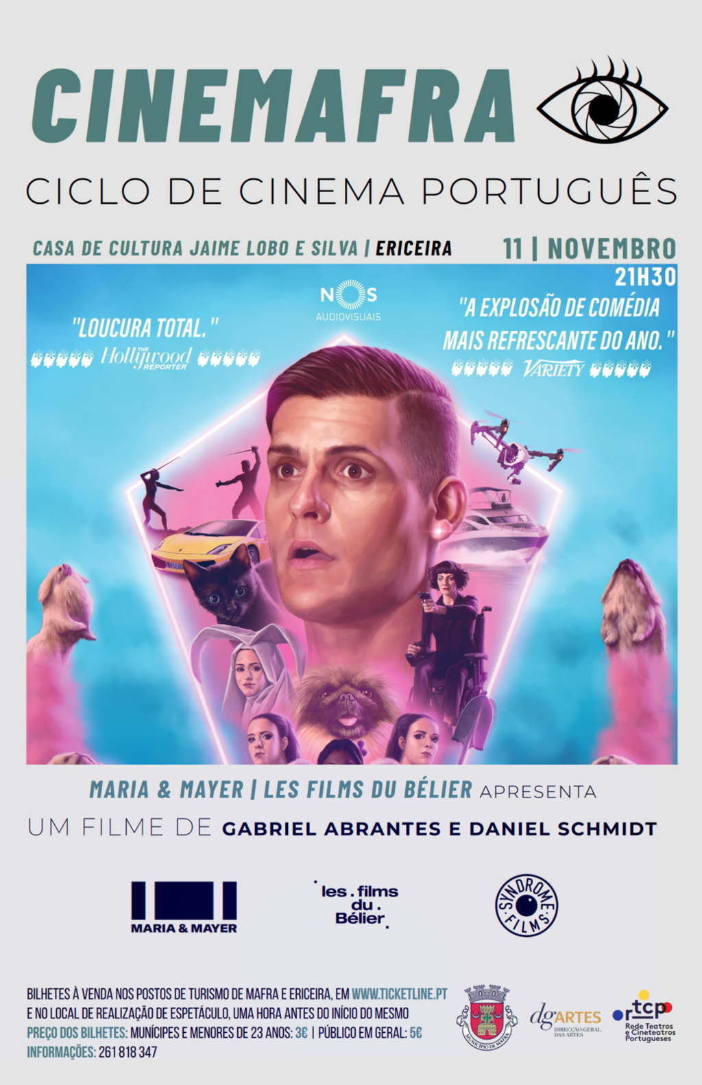 Bilhetes à venda nos Postos de Turismo de Mafra e Ericeira, em https://ticketline.sapo.pt/evento/cinemafra-diamantino-88262 ou no local de exibição do filme, uma hora antes do início do mesmo