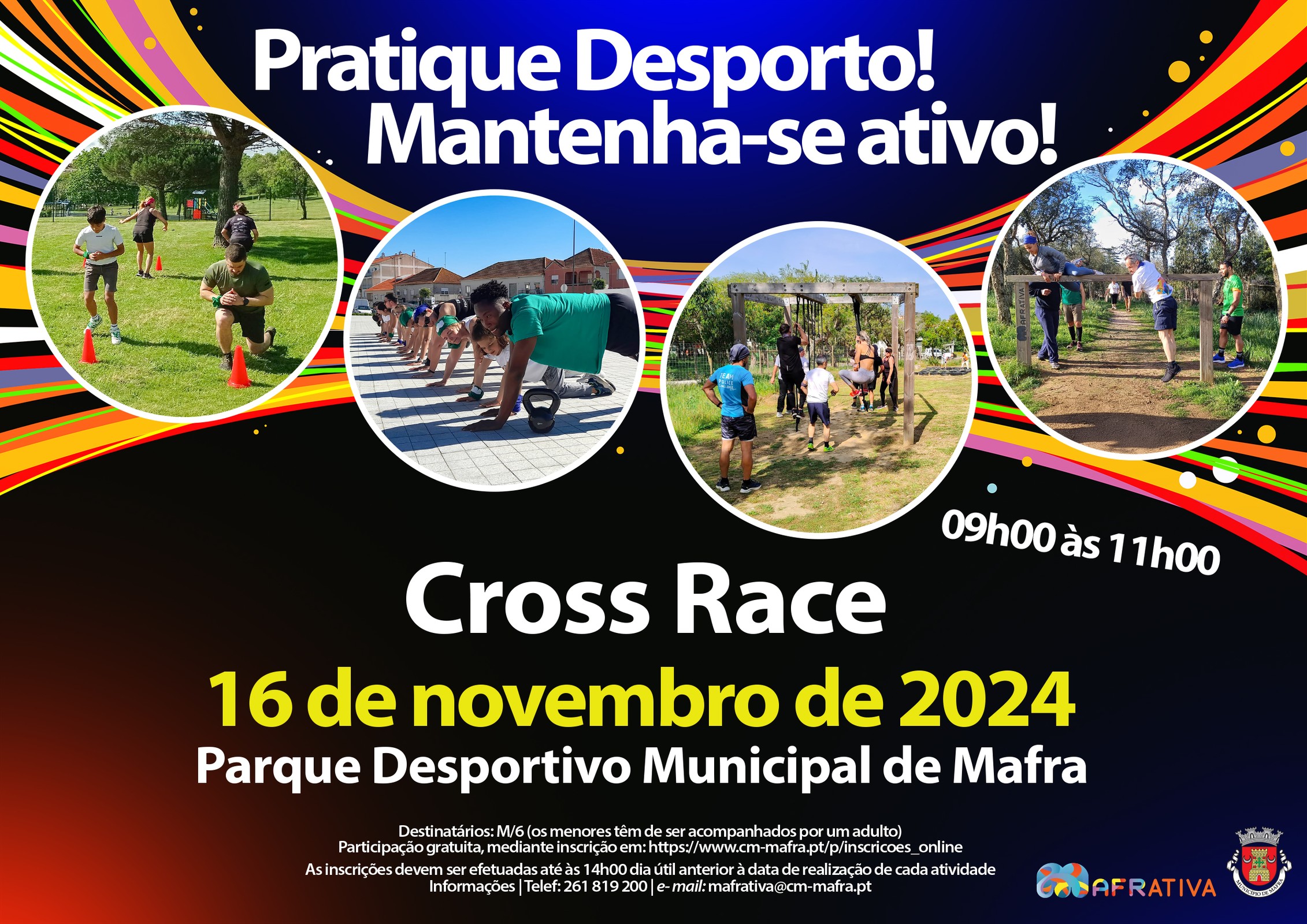 Já se inscreveu no desafio Cross Race? No dia 16 de novembro, às 09h00, participe no próximo treino desportivo ao ar livre, dinamizado pela Câmara Municipal, no Parque Desportivo Municipal de Mafra!