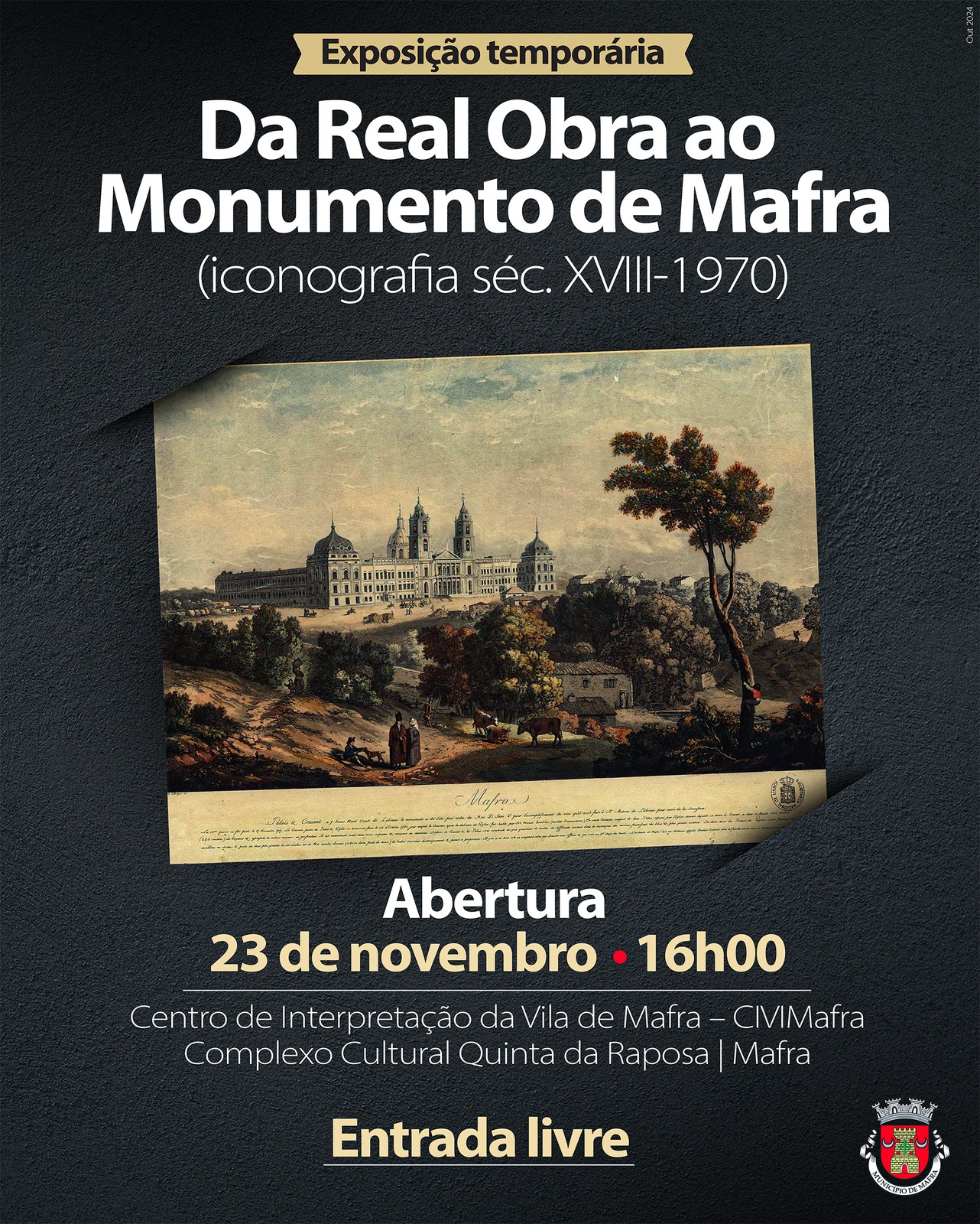 O Centro de Interpretação da Vila de Mafra (CIVIMafra), sito no Complexo Cultural Quinta da Raposa, apresenta a exposição temporária "Da Real Obra ao Monumento de Mafra (iconografia séc. XVIII-1970)”. Esta é mostra exaustiva, profusamente ilustrada, da iconografia do monumento edificado por iniciativa de D. João V, Magnânimo, cuja abertura está marcada para o dia 23 de novembro, às 16h00.