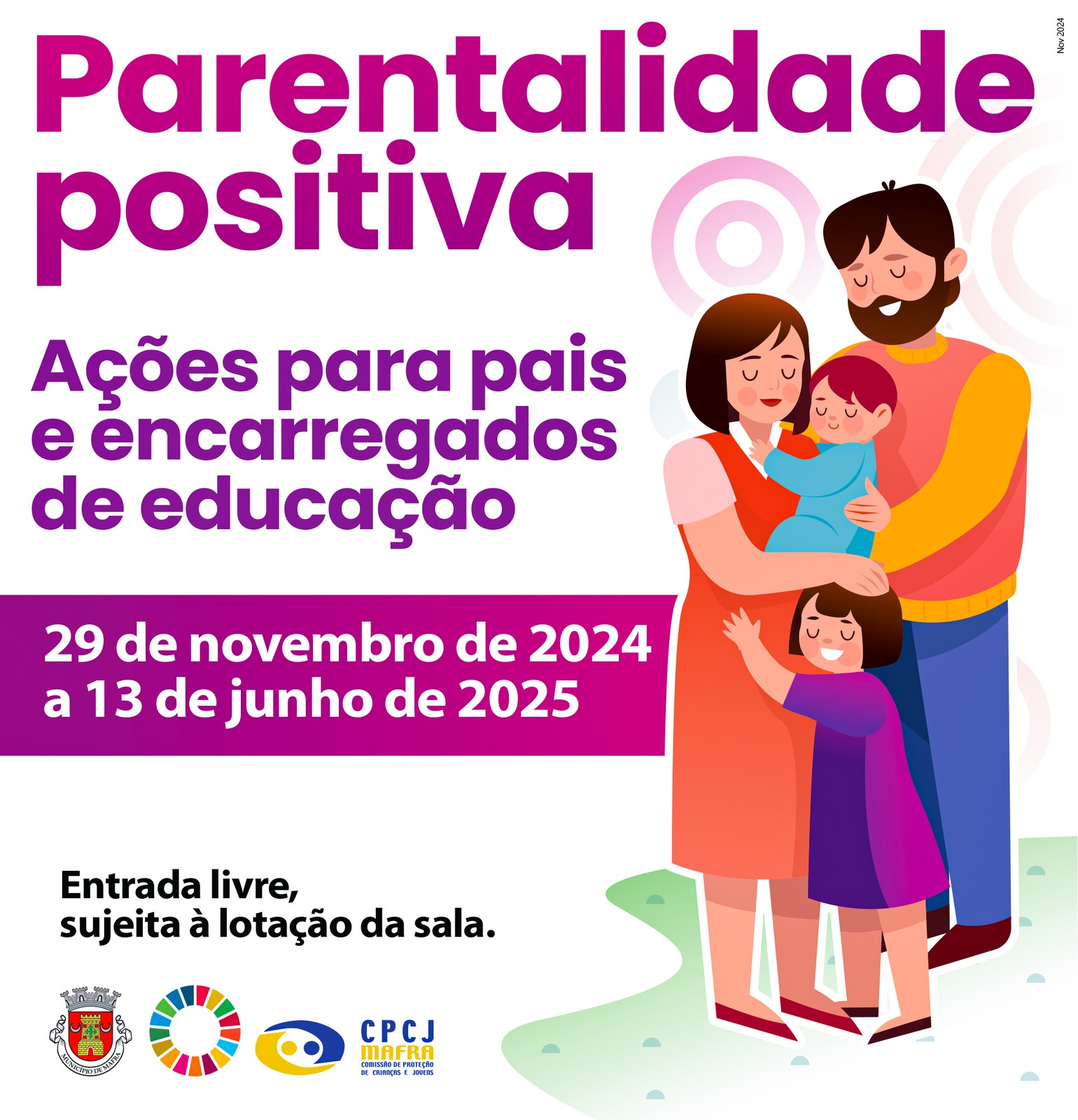 A educação parental consciente é um desafio. Para apoiar os pais e encarregados de educação do Concelho de Mafra, a Câmara Municipal promove um novo ciclo ações sobre a temática “Parentalidade positiva”. As sessões decorrem entre o dia 29 de novembro de 2024 e 13 de junho de 2025, das 18h00 às 19h00, em vários locais do concelho.