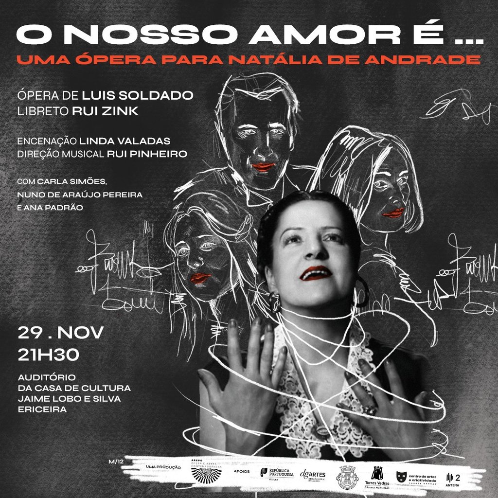 Natália de Andrade, cantora lírica portuguesa, é a personagem central da nova ópera contemporânea, que traz a palco temas como a saúde mental, o “bullying” e as constantes fragilidades e inseguranças humanas comuns a todos nós. “O Nosso Amor é…” sobe ao palco no dia 29 de novembro, às 21h30, na Casa de Cultura Jaime Lobo e Silva (Ericeira).