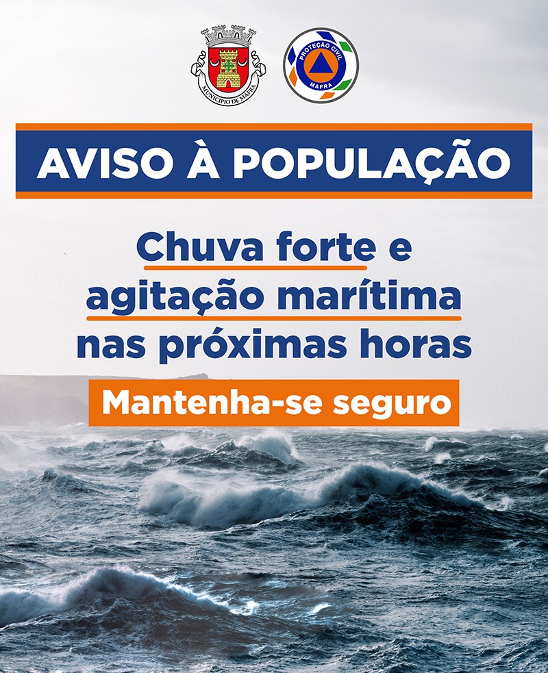 O Serviço Municipal de Proteção Civil informa que, de acordo com a informação disponibilizada pelo IPMA – Instituto Português do Mar e da Atmosfera, foi emitido um aviso meteorológico “Amarelo” para os dias 5 e 6 de janeiro, devido a chuva intensa, que poderá ser acompanhada de trovoada e queda de granizo. Prevê-se, também, a ocorrência de agitação marítima.
