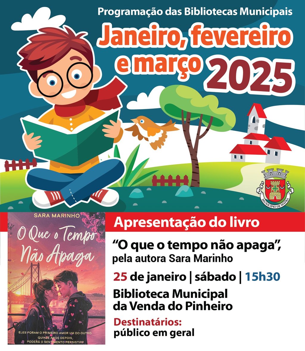 A autora Sara Marinho apresenta o seu mais recente livro “O que o tempo não apaga”, um romance jovem-adulto sobre escolhas e consequências, mágoas do passado, perda, coragem e, sobretudo, amor. Não perca a sessão com a autora, no próximo sábado, dia 25 de janeiro, às 15h30, na Biblioteca Municipal da Venda do Pinheiro.