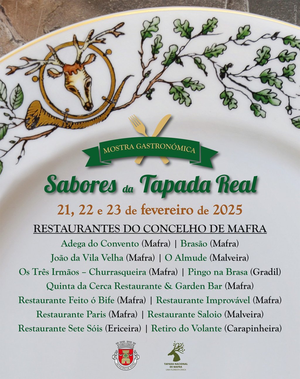 Começa já amanhã a mostra gastronómica “Sabores da Tapada Real”! Ensopado de gamo, feijoada de javali ou arroz de perdiz são algumas das iguarias que poderá degustar nesta edição do certame, que integra 13 restaurantes aderentes, e que decorre até ao dia 23 de fevereiro.