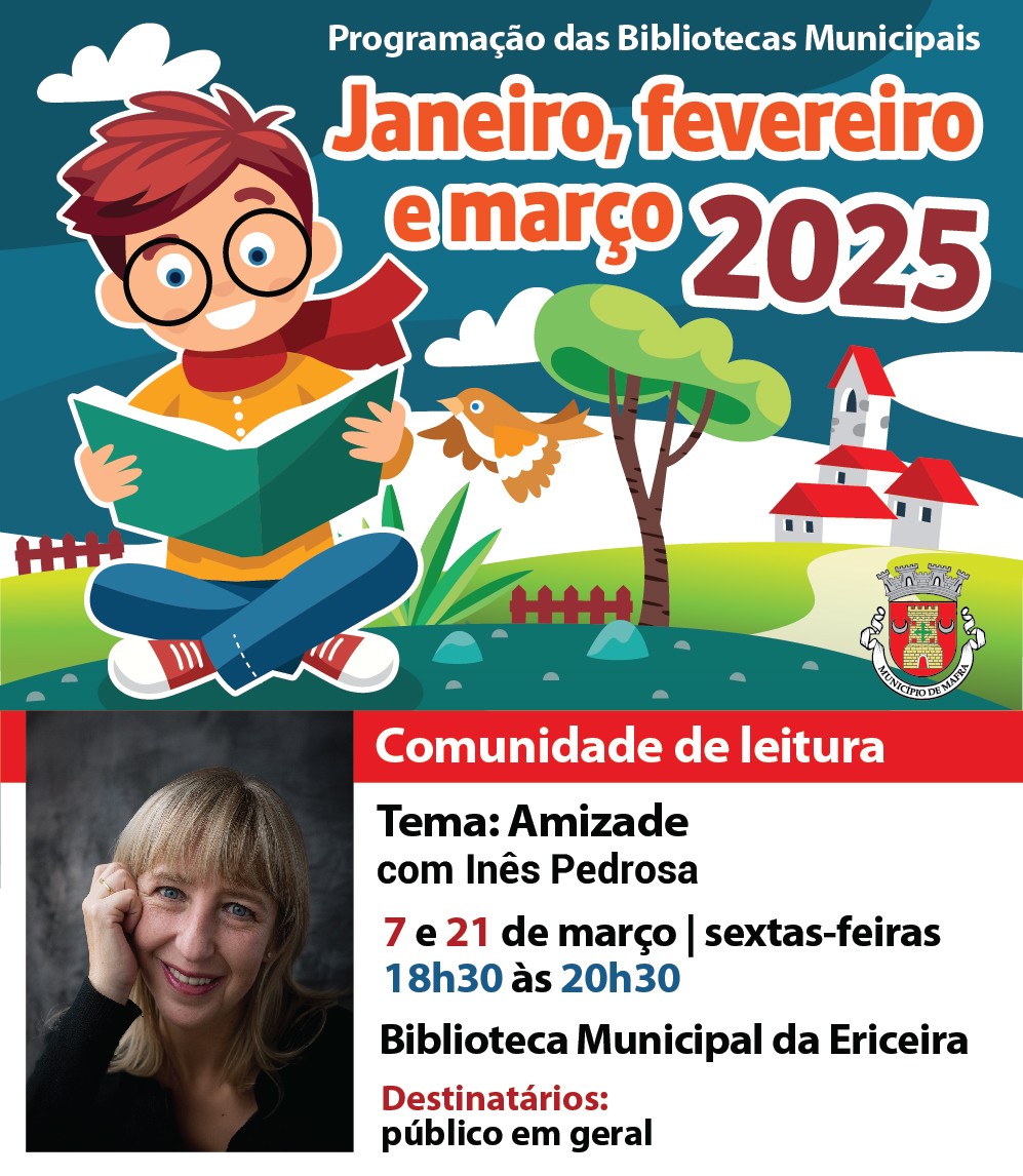 As sessões irão decorrer quinzenalmente, às sextas-feiras, sobre obras literárias diferentes. Contacte a Biblioteca Municipal da Ericeira e descubra quais serão os próximos temas.